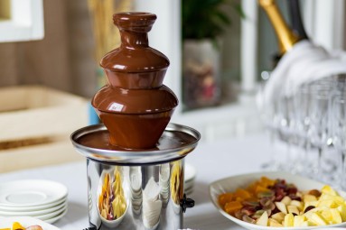 Kviečiame pasimėgauti švelnia ir kerinčia šokolado fondiu tradicija, kuri savo ištakas turi XVIII a. Šveicarijoje. Tai gurmaniška patirtis, leidžianti mėgautis tirpstančio šokolado aromatu ir skoniu, o kartu – jaukiu laiku su artimaisiais. Šokolado fondiu–fontanas su vaisiais tinka ne tik smagiai popietei, bet ir romantiškai vakarienei, draugų susitikimui ar originaliai šventei. Panardinus šviežius vaisius į šiltą, tirpstantį šokoladą, akimirka tampa maža švente, kupina saldžių įspūdžių, juoko ir bendrystės. Tai patirtis, kuri suteikia ir žiupsnelį nostalgijos, ir tikrą deserto magiją, kurios norisi dar ir dar!