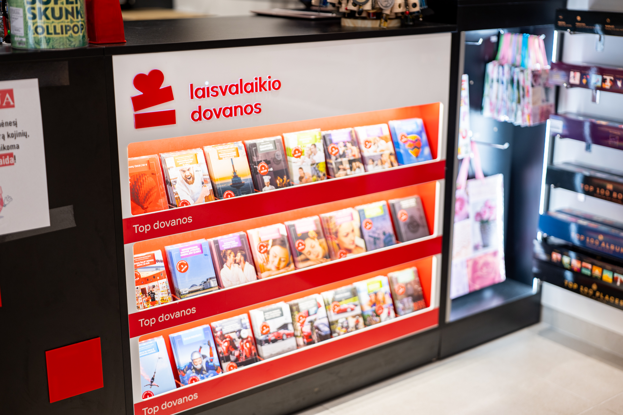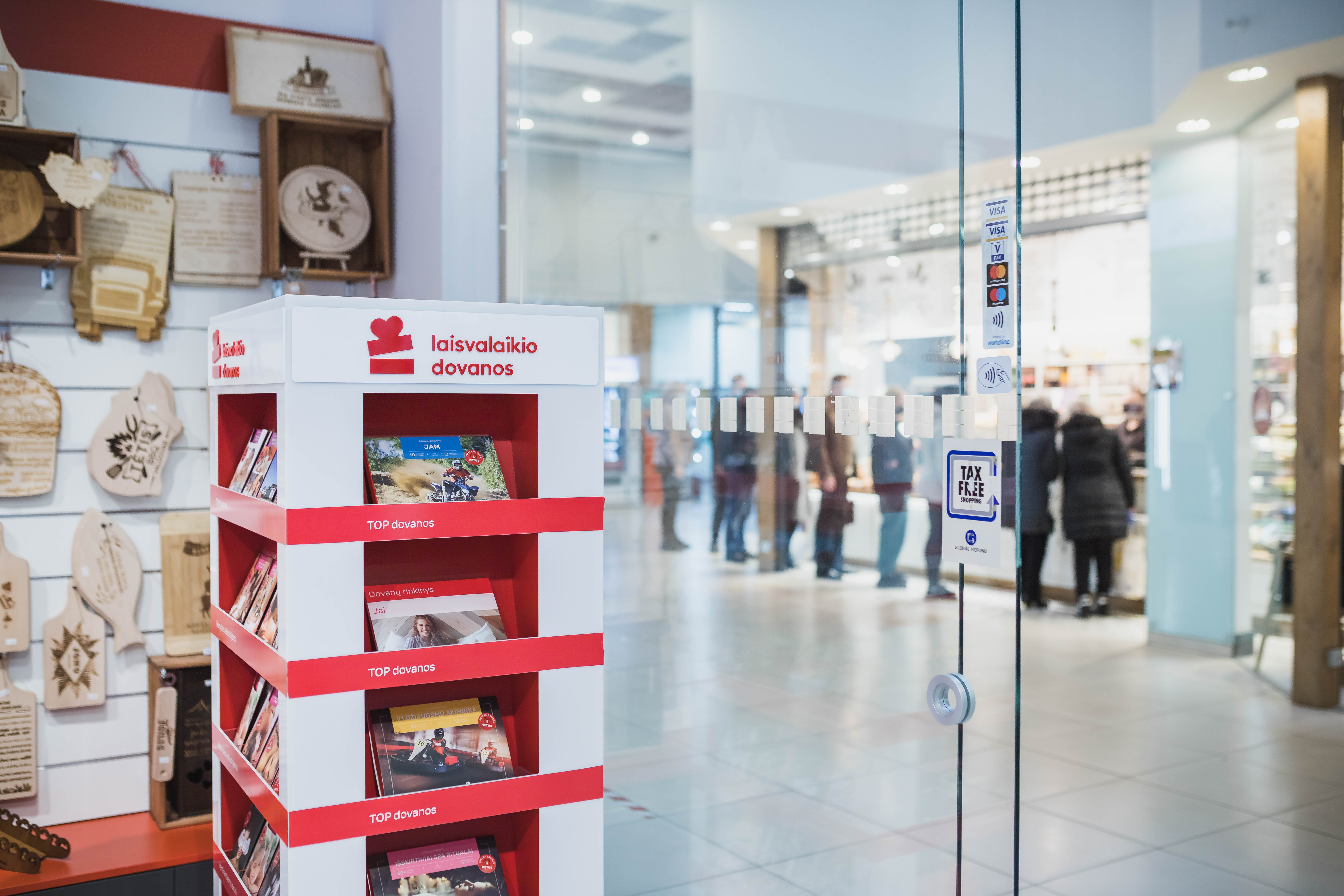 „Laisvalaikio dovanų“ parduotuvėse galite įsigyti išskirtinio dizaino dovanų kortelių, rinkinių ir dovanų pakuočių. Be internetinės ir fizinių parduotuvių, dovanas taip pat galite įsigyti stenduose RIMI parduotuvėse.